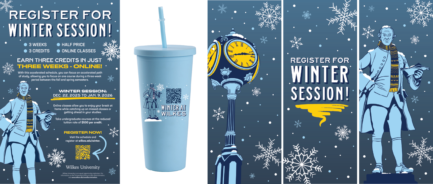 Here you will see some of the many projects I worked on during my time as an intern and now as a Graphic Design Specialist with Wilkes University Marketing & Communications Department. All work requires adherence to the University’s brand and is used for the promotion of events on campus. All work is live and was made to be presented to the public.